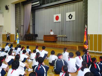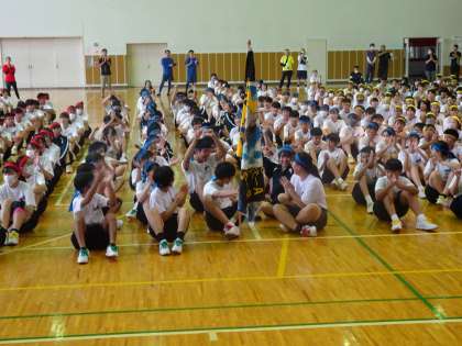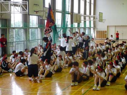 雨が降ってきたため、急遽、会場を変更して体育館で行いました。
