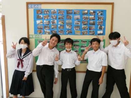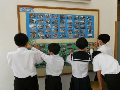 学年掲示板には先日行われたフェスタの写真が掲示されています。文化の部、体育の部のみなさんの活躍した様子をみんなで見合っています。また今日は5名の生徒が掲示するのを手伝ってくれました!