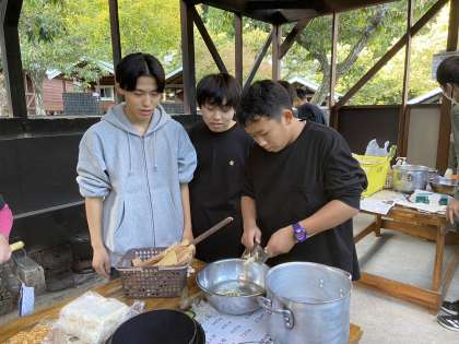 味噌で煮込んだ豚肉と野菜の汁に,うどんが入ります!