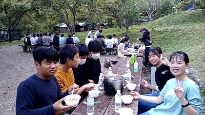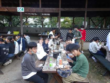 野外調理,食事の様子。