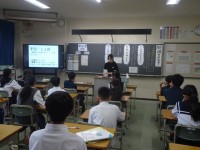 家庭科の授業では、裁縫を行っています。ミシンを使う生徒やボタンを手縫いする生徒など、一人一人が「バック」の完成に向けて一生懸命に取り組んでいました。教師にアドバイスをもらいながら取り組む生徒も見られました。
