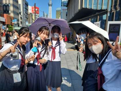 浅草周辺での班別分散研修中の様子です。