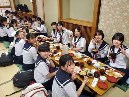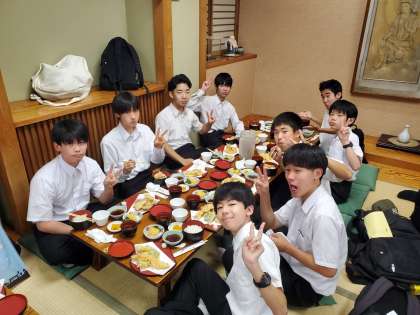 この後,ごちそうさまをした後,班ごとに今夜,宿泊するホテルに向かいます。