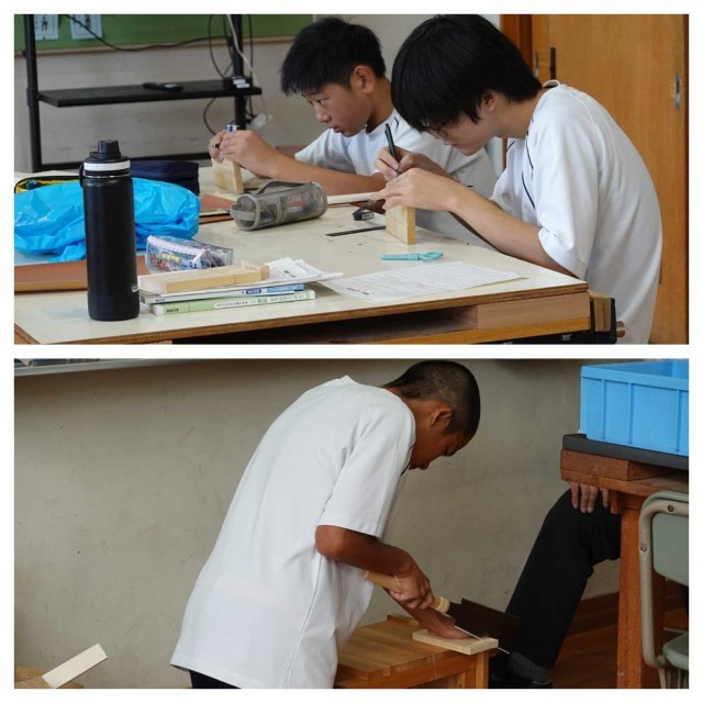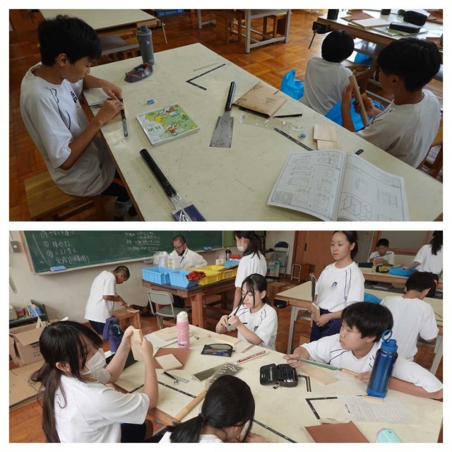 技術科の学習「木材加工」が進んでいます。素敵な作品が出来上がることを祈ります。(な)