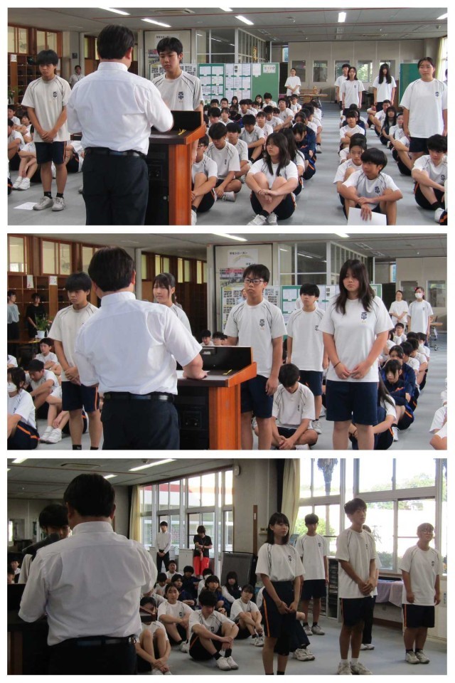 朝会にて、後期学級役員・委員長の任命が行われました。10月に入り、年度の折り返しとなりました。今日から後期組織で活動が始まります。(な)