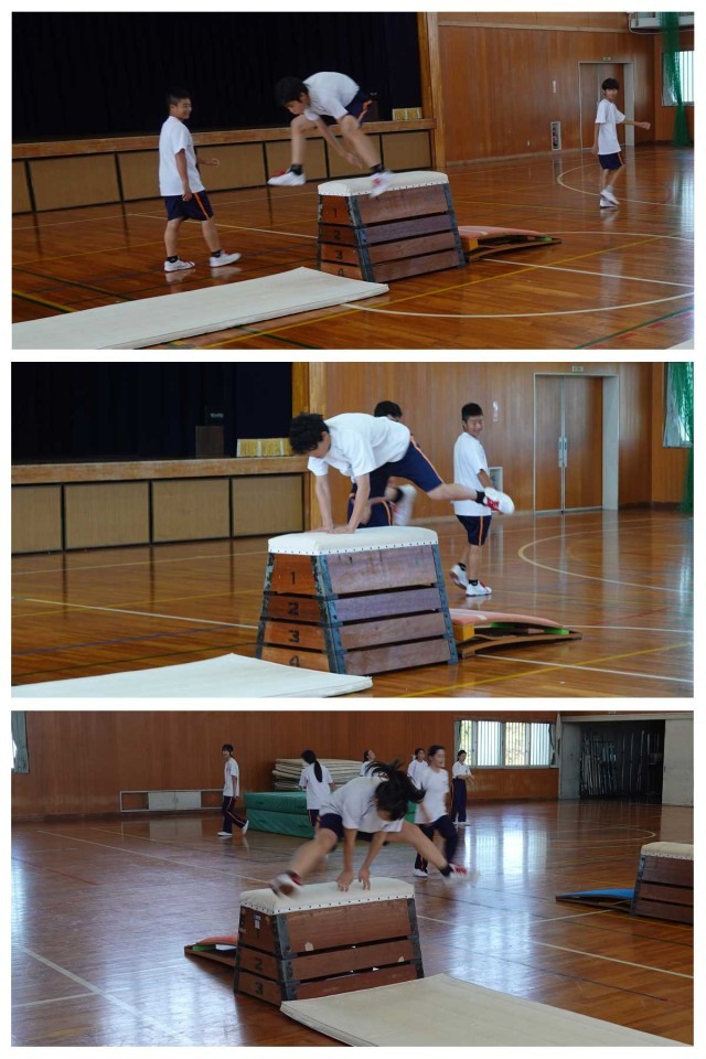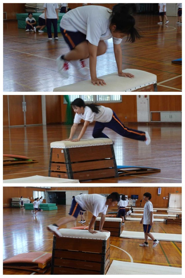 跳び箱に対して、「恐怖心」を抱く生徒もいます。慣れてしまえばどうということはないのですが、なかなかその「恐怖心」を打ち払うのは難しいようです。(な)