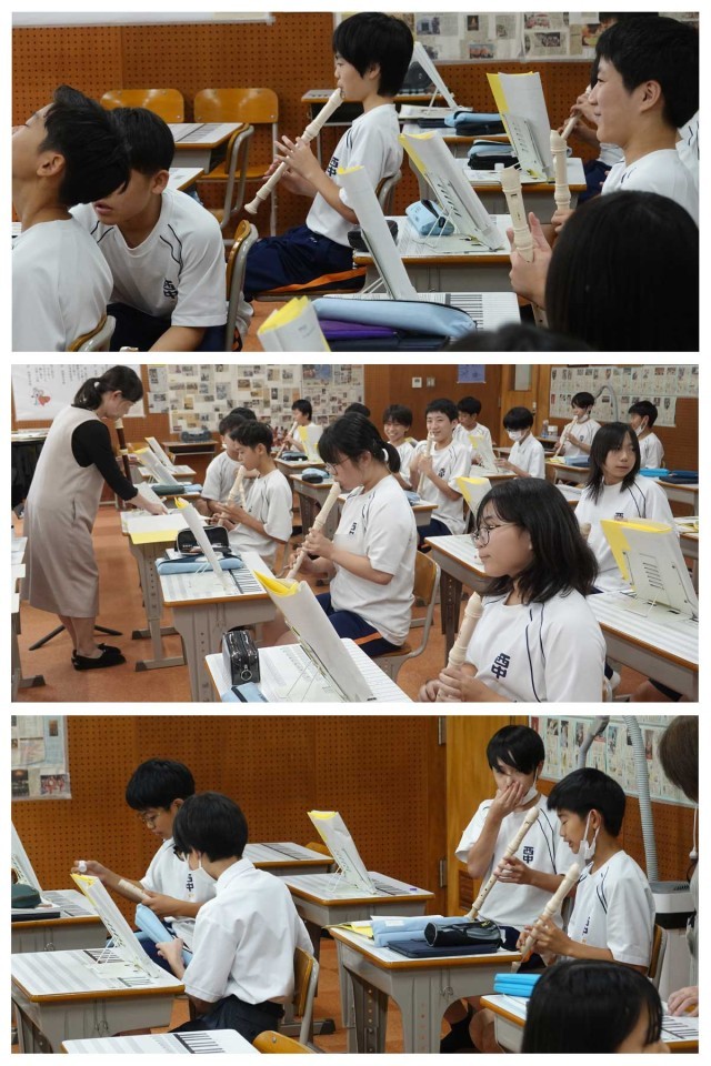 小学校までのソプラノリコーダーとは、大きさも音色も違うアルトリコーダーの練習です。よい音色が響き渡ったでしょうか?(な)