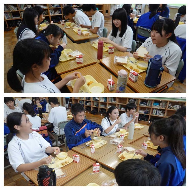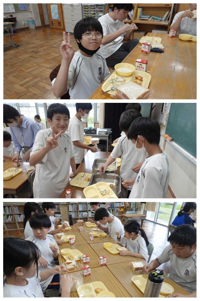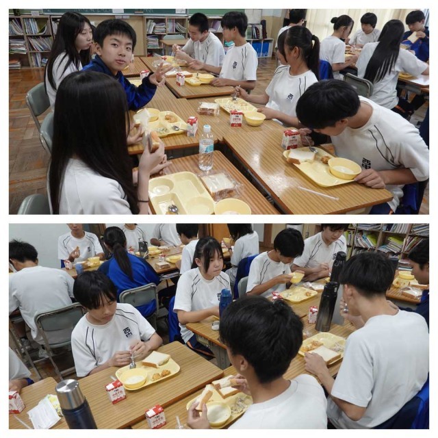 給食を食べ終わり、献立を見て「ポテトサラダサンドの『具』」ということに気が付きました・・・。(な)