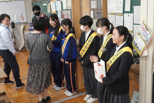 執行部のメンバーが、職員室にも赤い羽根募金の協力依頼にやってきました。(な)