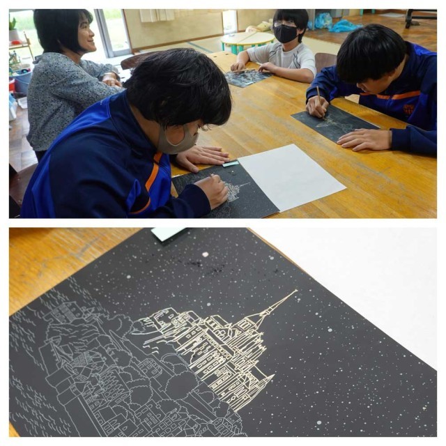 美術の時間です。細かな作業が続きます。かなりの集中力が必要です。(な)