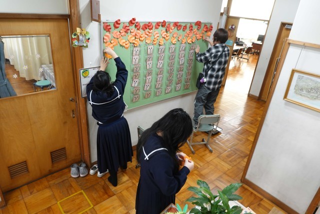 Iルームの生徒が、保健室前の季節の掲示を衣替えしてくれました。(な)