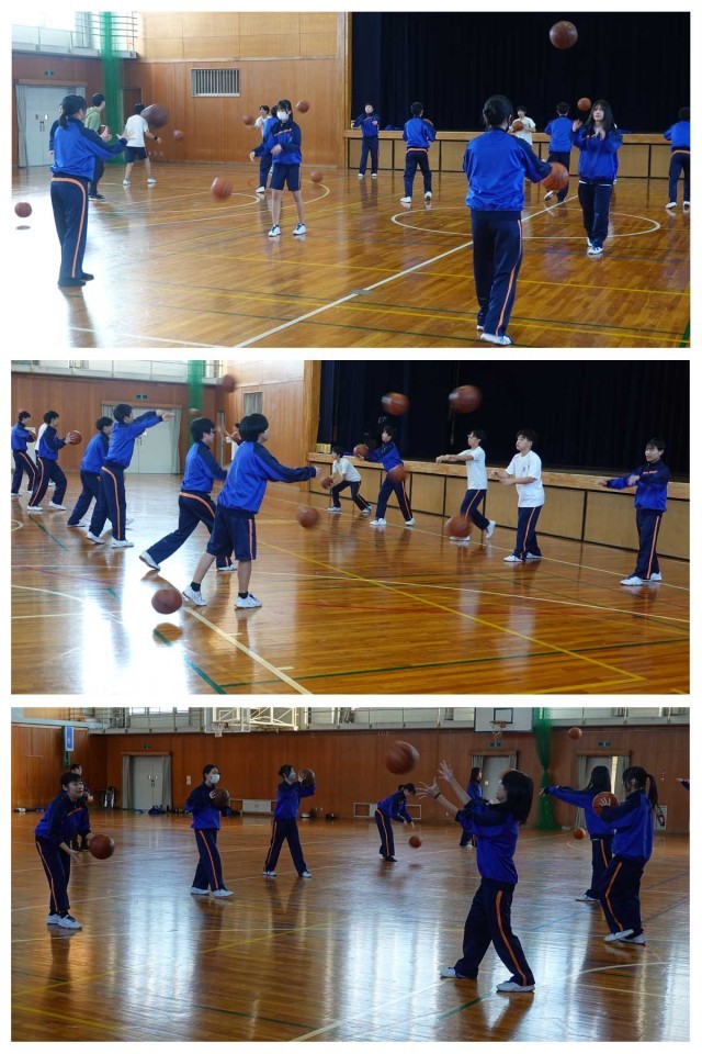 体育の時間にバスケットボールの学習です。どんなスポーツでも基本の動作はとても大切です。今日はさまざまなパスの練習に取り組むことができました。(な)