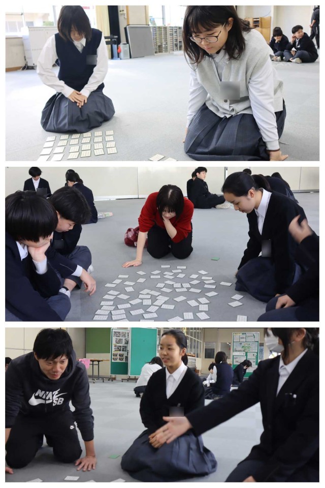 「百人一首」のようです。この季節ならではの学校風物詩ですね。(な)