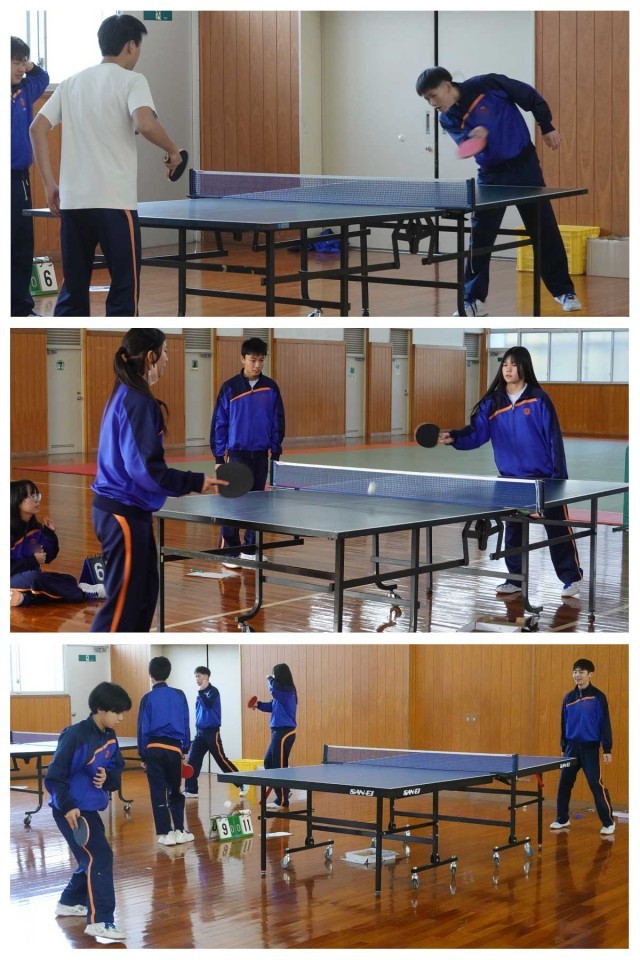3年生も保健体育の時間に卓球に取り組んでいます。得点が決まると、大きな声が聞こえてきます。(な)