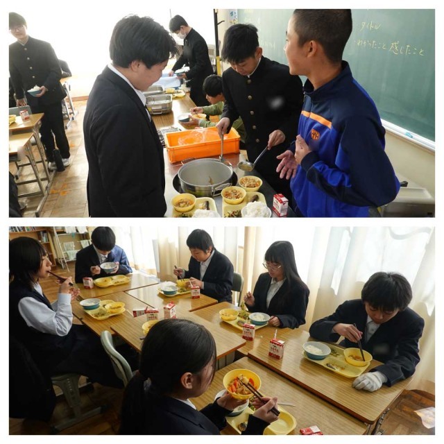 今日から3日間、3年生は私立一般入試のため3時間授業で給食なしで下校です。せっかくの肉ジャガの日なのに、残念です。(な)