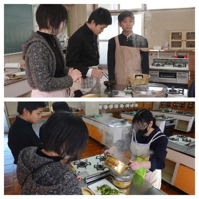 こんぶ、かつおぶしと出汁をからみそ汁を調理します。お味はいかがでしたか?(な)