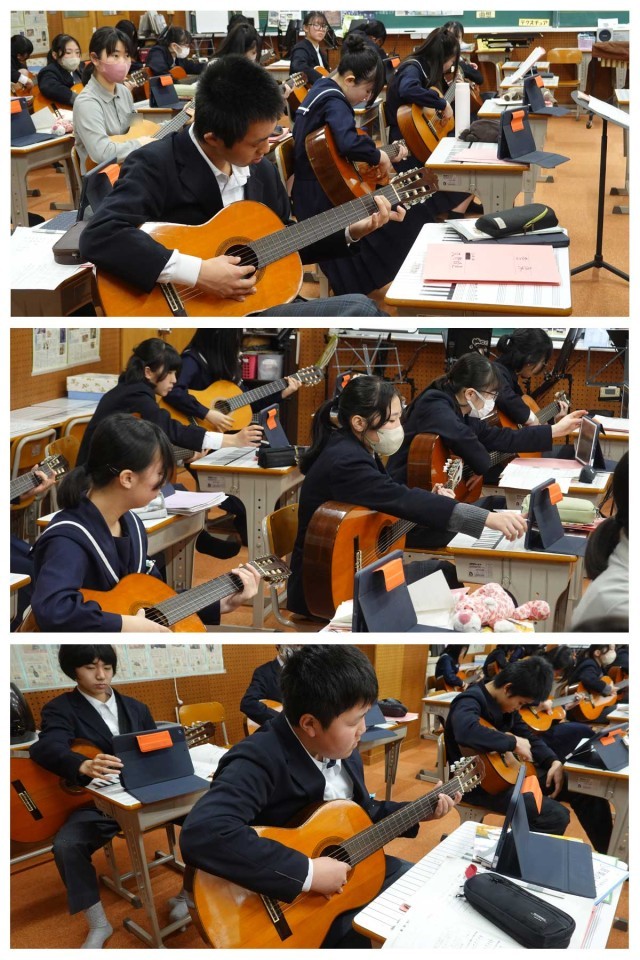 音楽の時間に、アコースティックギターの演奏に挑戦です。なかなかサマになってますね。(な)