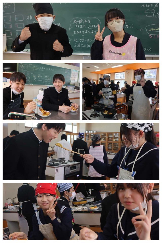 「幼児のおやつ作り」として、家庭科の時間に調理実習です。みんないい顔してますね。(な)
