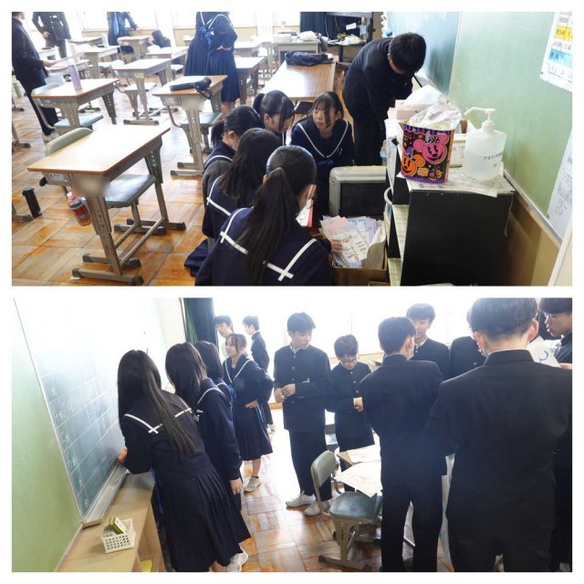 卒業を前に、教室環境の最終整備です。「立つ鳥跡を濁さず」ですね。(な)