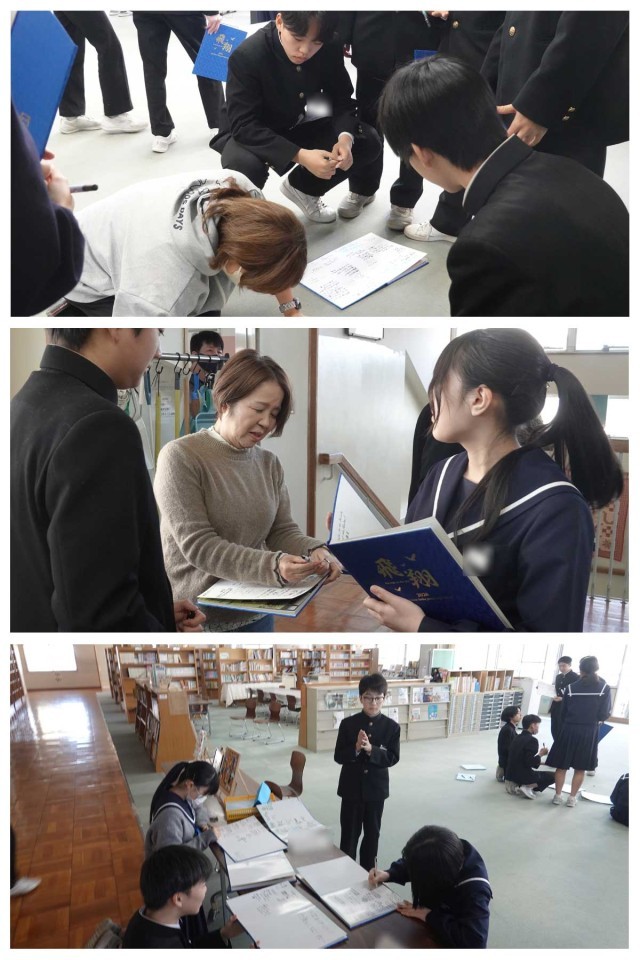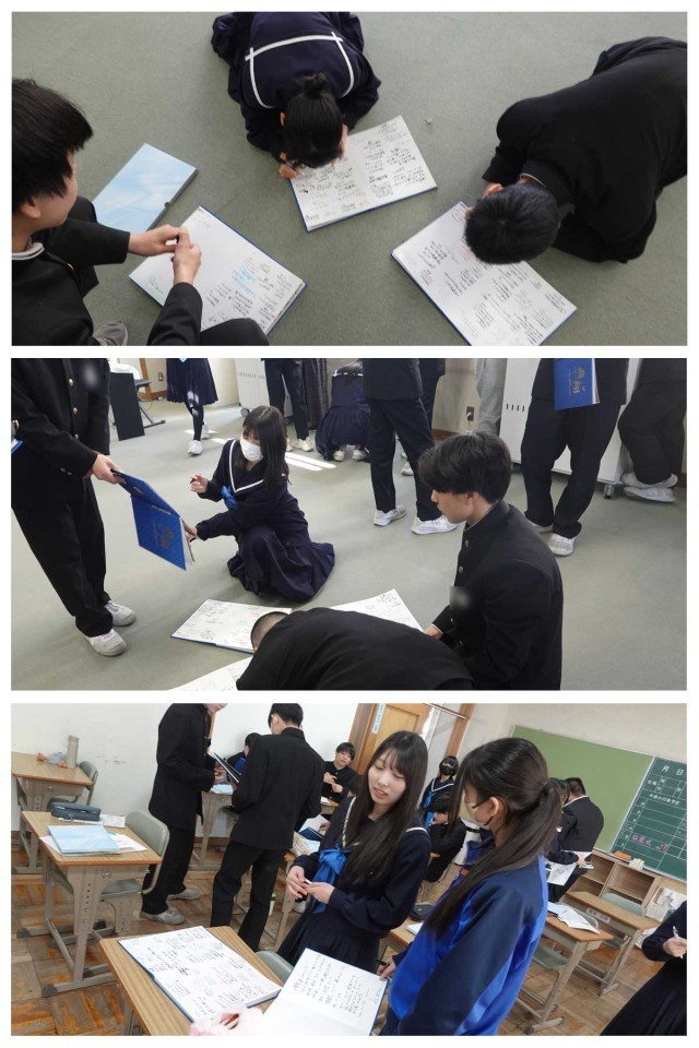 卒業アルバムが配付され、白紙のページに友達や先生方からメッセージをいただきました。この光景も今や定番の光景ですね。(な)