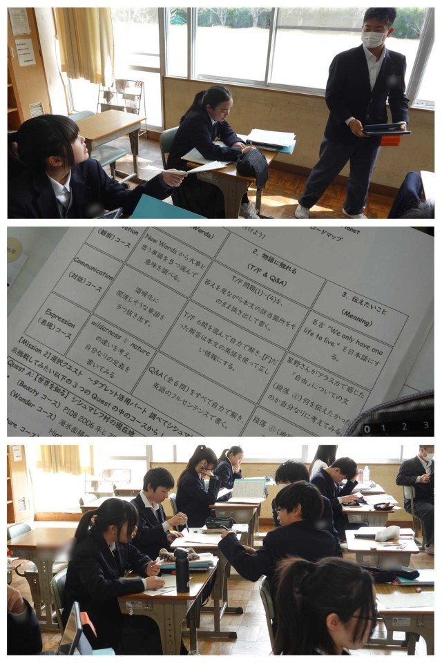 英語の授業で、それぞれが学習コースを選び、個別の進度で学習が進んでいます。(な)