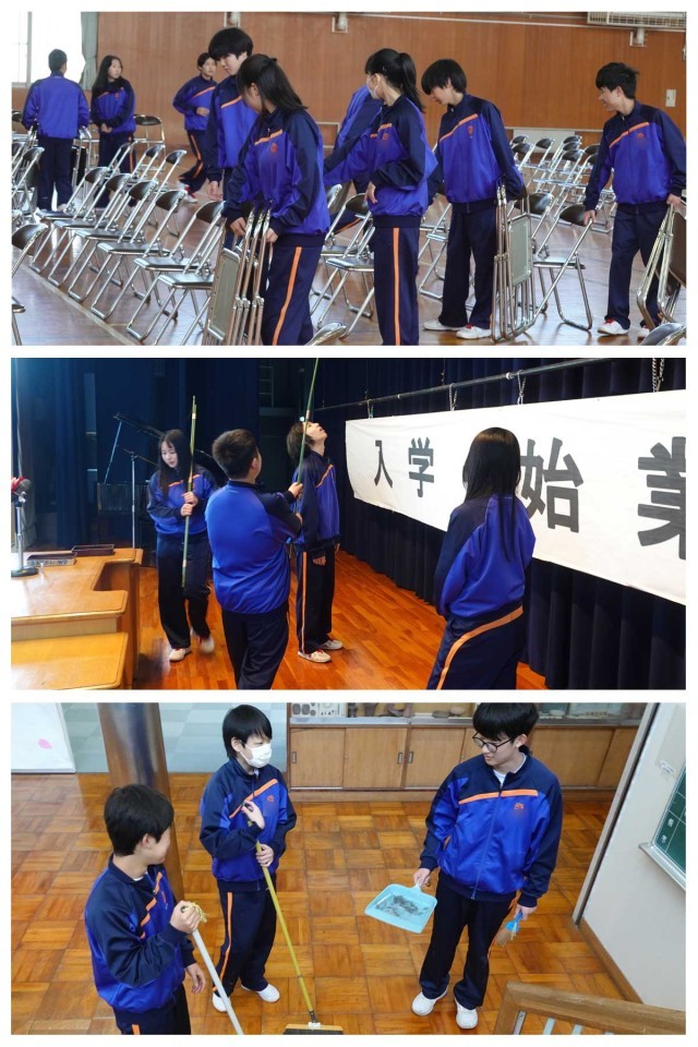 赴任式終了後は、明日の「入学・始業式」に向けて全員で準備に臨みました。明日もきっと「晴れ」ですね。(な)