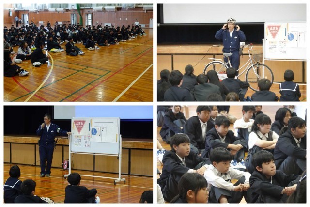 緒川新田駐在所長さんによる交通安全指導が行われました。登下校の際だけでなく、自転車の運転には十分気をつけてくださいね。(な)