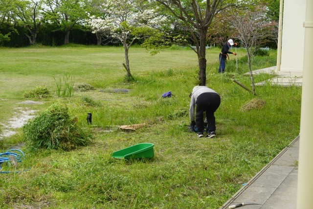 テニスコート横の中庭がきれいになっていきます。かつてはここは「遊休地」と呼ばれていた記憶があります。(な)