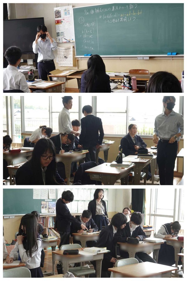 「(a+b)(c+d)=ac+ad+bc+bd」となる理由を考えます。公式を鵜呑みにするのではなく、その理由を追及することで真の理解につながりますね。(な)