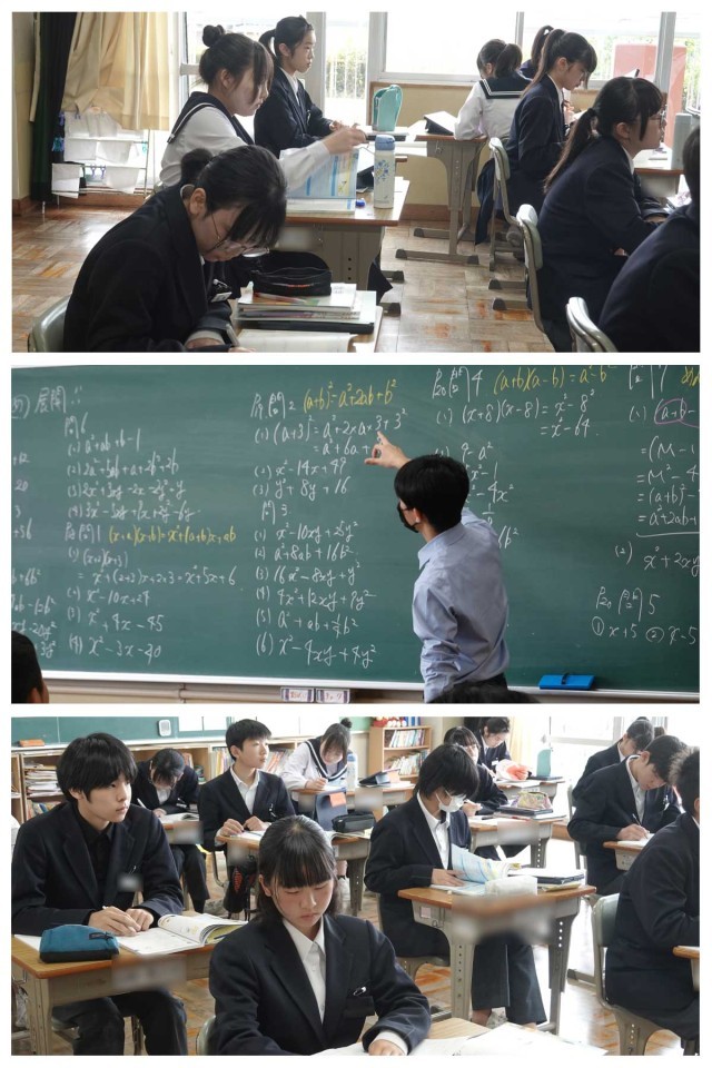 「展開」の学習です。ひたすら計算問題に取り組みます。(な)