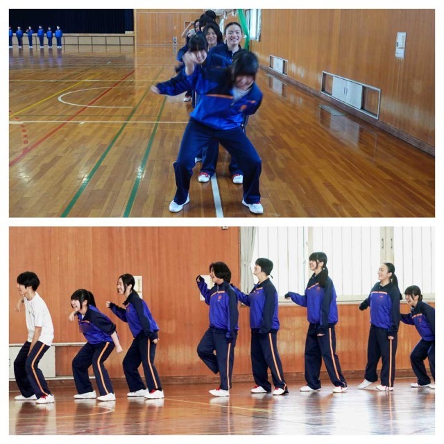 3年生も集団行動の学習に取り組んでいます。1・2年生とは違い、オリジナルの集団行動もあるようです。(な)