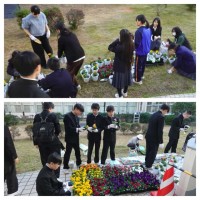 学校の花というと、この時期はパンジーですね。今日は苗を鉢植えする作業をボランティ...