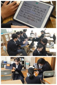 それぞれの意見文をタブレットで共有します。便利な時代になりました。(な)