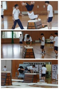 3年生の跳び箱では、多くの生徒が「頭はね跳び」に挑戦する姿がありました。(な)