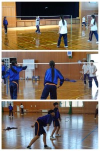 体育の時間、どうやら「跳び箱」は終了し「バドミントン」の学習に入っているようです...