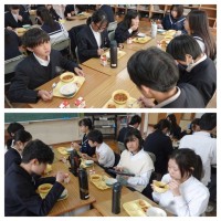 2日間のテストを終え、どの学年もやりきった顔で楽しい給食の時間です。なお、本日出...