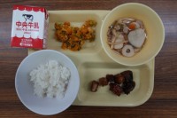 待望の「米」です。日本の米は世界一です。大満足な献立でした。(な)