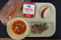 今日の献立は「チーズバーガー」です。なかには「ダブチ」「トリチ」の生徒もいました...